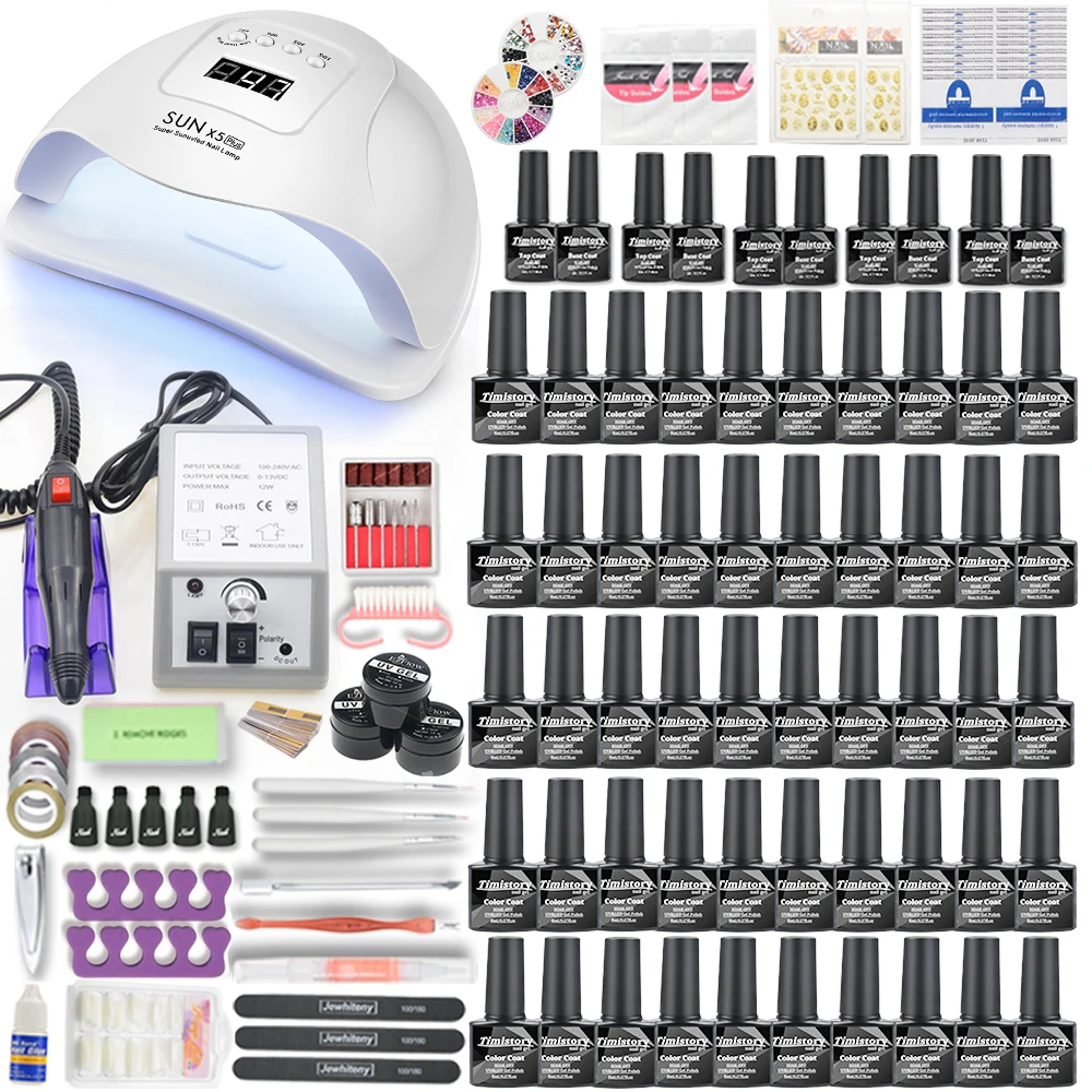 Name: Uñas lámpara de uñas LED UV y clavo eléctrico máquina de perforación con 50/40/30/20/10 Uds colores de uñas de Gel polaco uñas arte herramienta